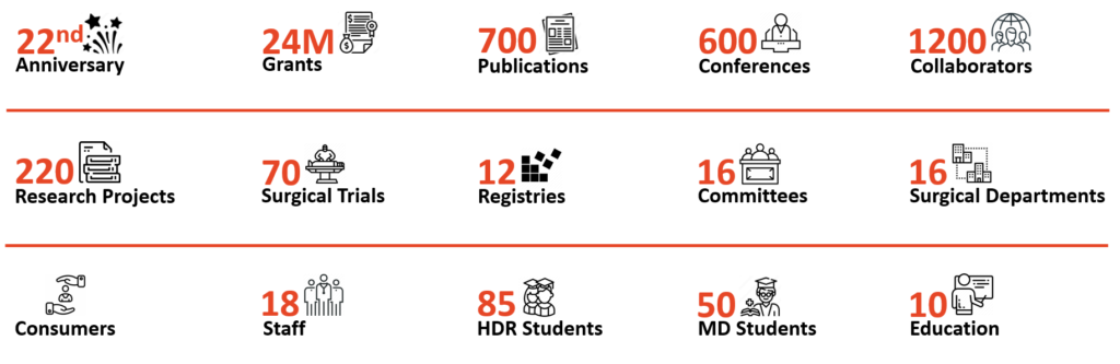 Over the past 22 years, SOuRCe has rapidly developed to become one of the major Australian surgical research units, and is now a centre of surgical research excellence with international recognition. During this time, SOuRCe was awarded over $30M in competitive funding, including major funding bodies such as the NHMRC, MRFF, CINSW, NIHR and others. SOuRCe has published over 700 peer-reviewed scientific articles in the top surgical and medical journals, including NATURE, BMJ, JAMA surgery, Annals of Surgery, The British Journal of Surgery, Journal of Surgical Oncology and others high impact journals. SOuRCe has supervised over 85 PhD and MPhil students and over 50 MD students. These achievements have contributed significantly to the enhancement of patient outcomes and have changed clinical practice at RPAH, Australia and Internationally.